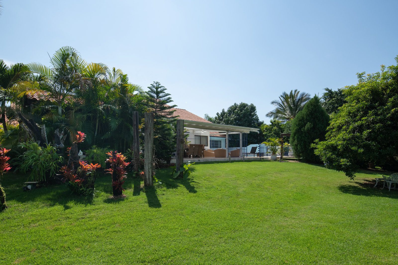 Hermosa villa de dos niveles, que desde la entrada invita a disfrutar de un amplio patio, diseñado para apreciar distintos tipos de vegetación, aire fresco y el canto de las aves.