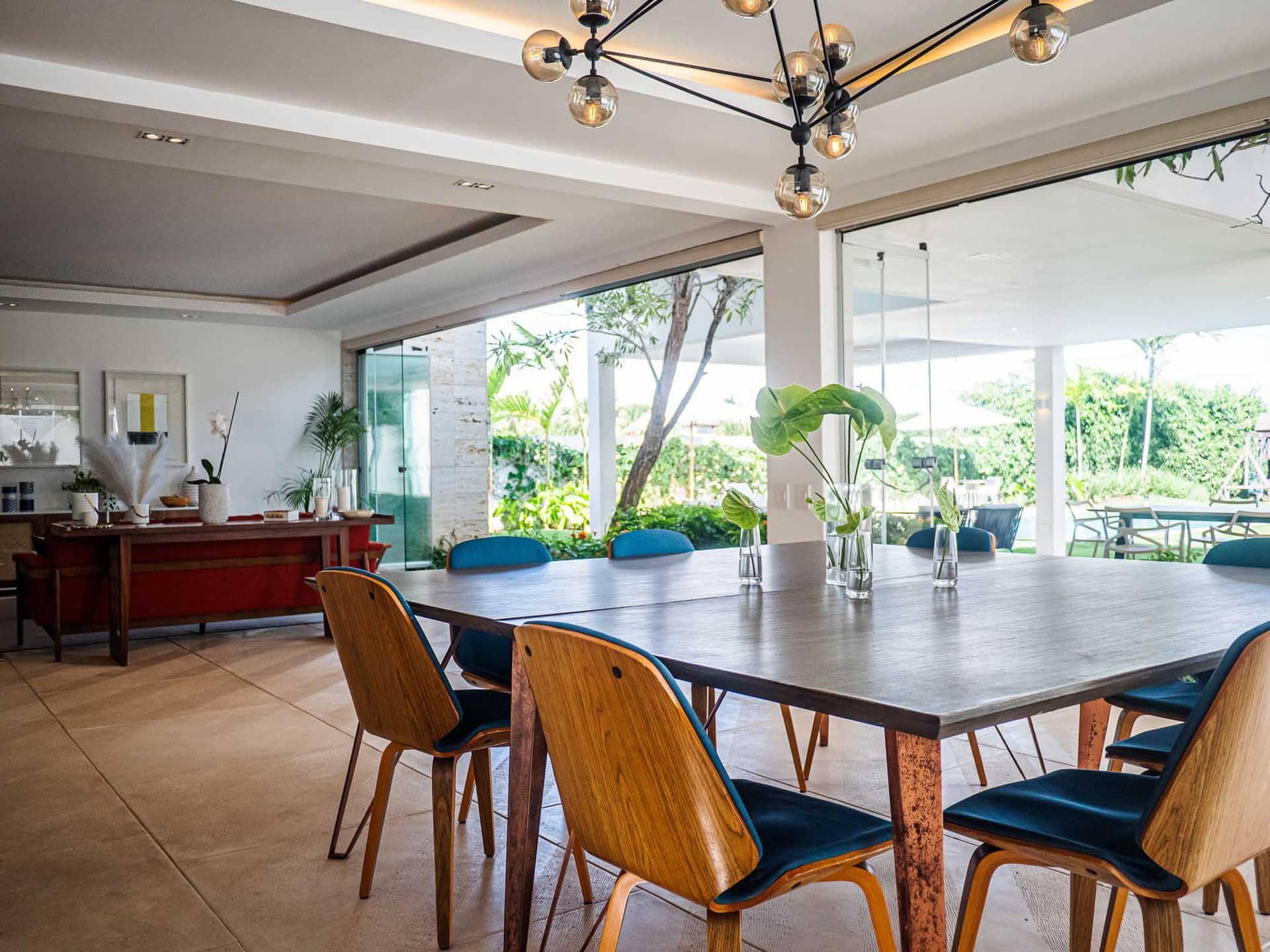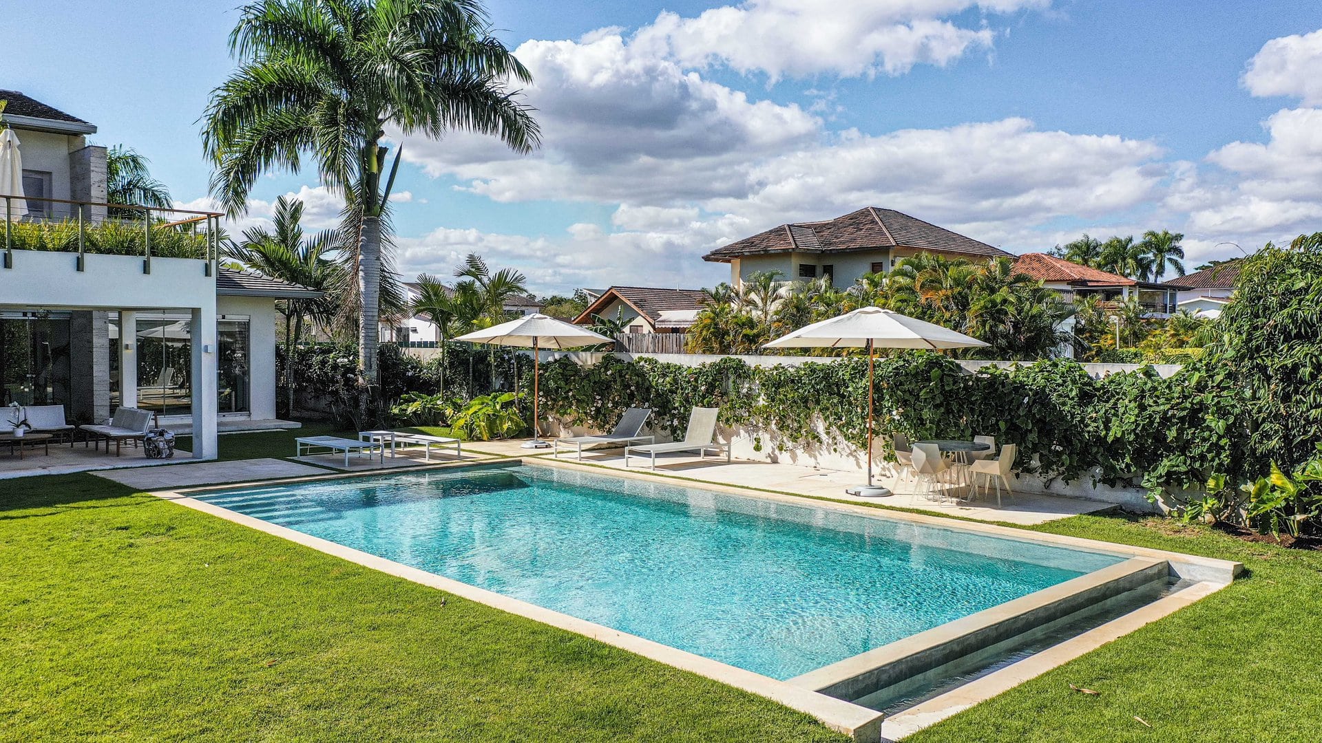 Villa Brisas del Este es una villa de estilo contemporáneo con toques clásicos que ofrece 4 habitaciones, 6 baños y amplias habitaciones. La cocina de espacio abierto es perfecta para preparar comidas y la piscina, la terraza y el acogedor estudio brindan opciones de entretenimiento. Está ubicado cerca de las canchas de polo y rodeado de una exuberante vegetación, lo que lo convierte en un destino tranquilo y silencioso para que los grupos se relajen y disfruten.