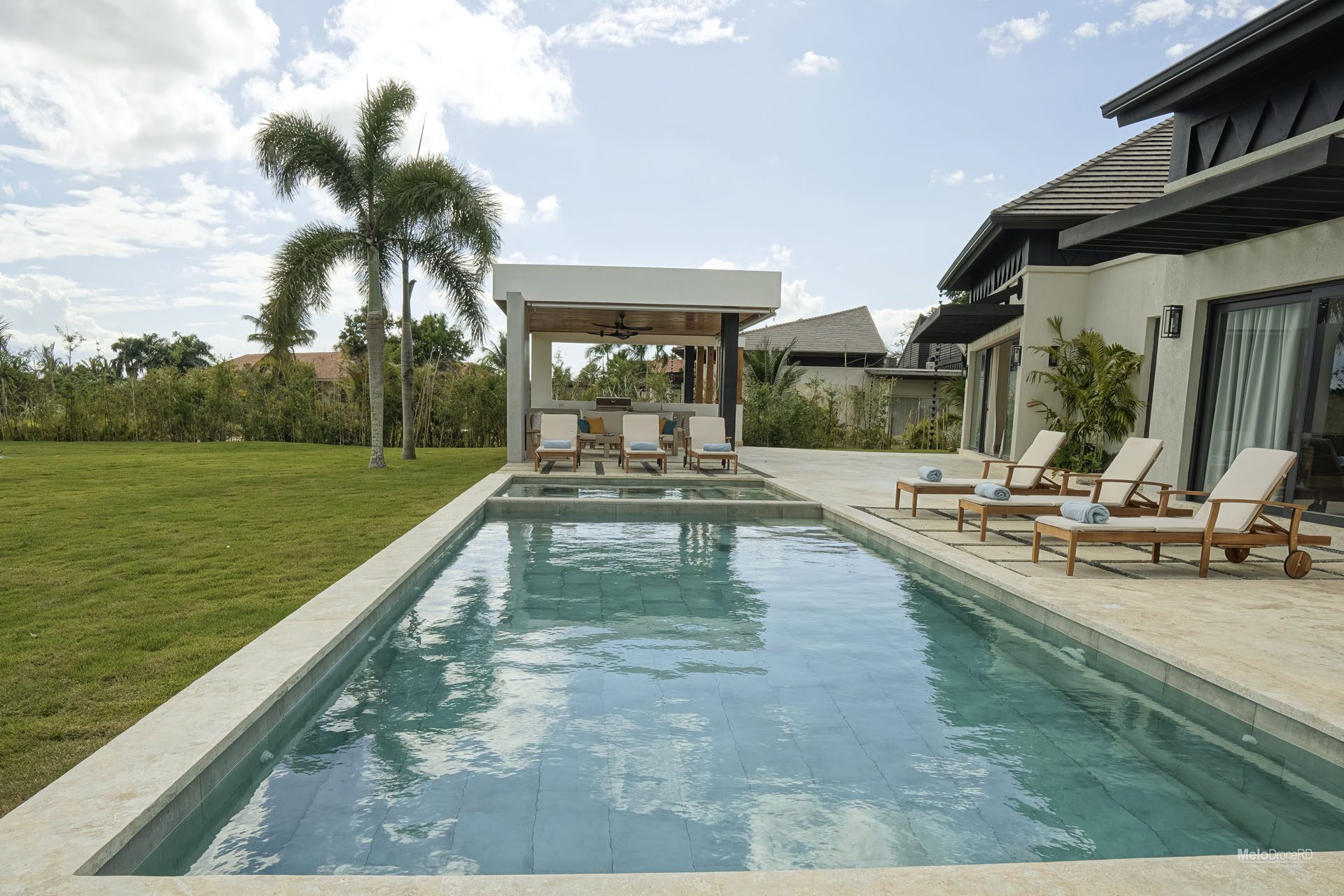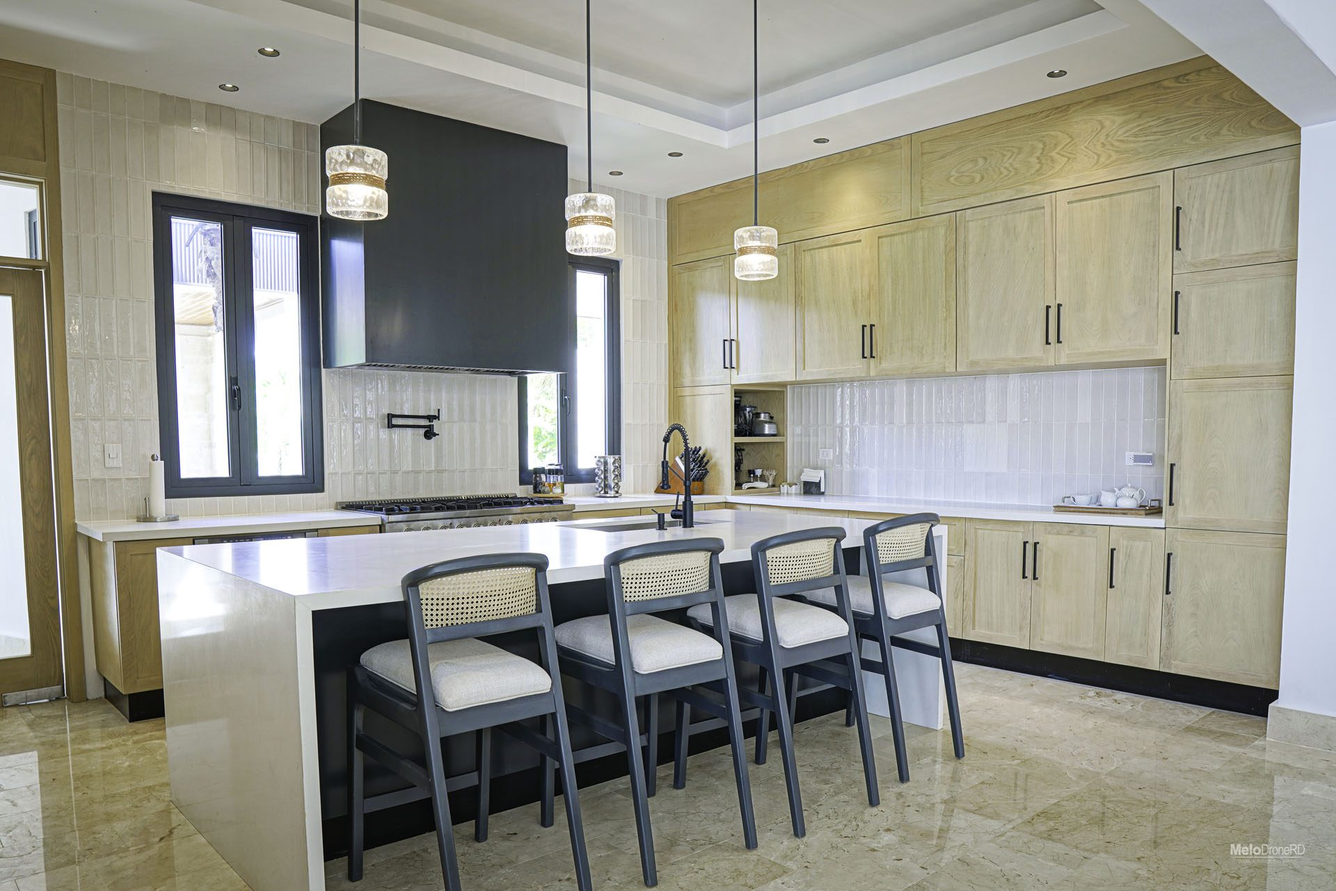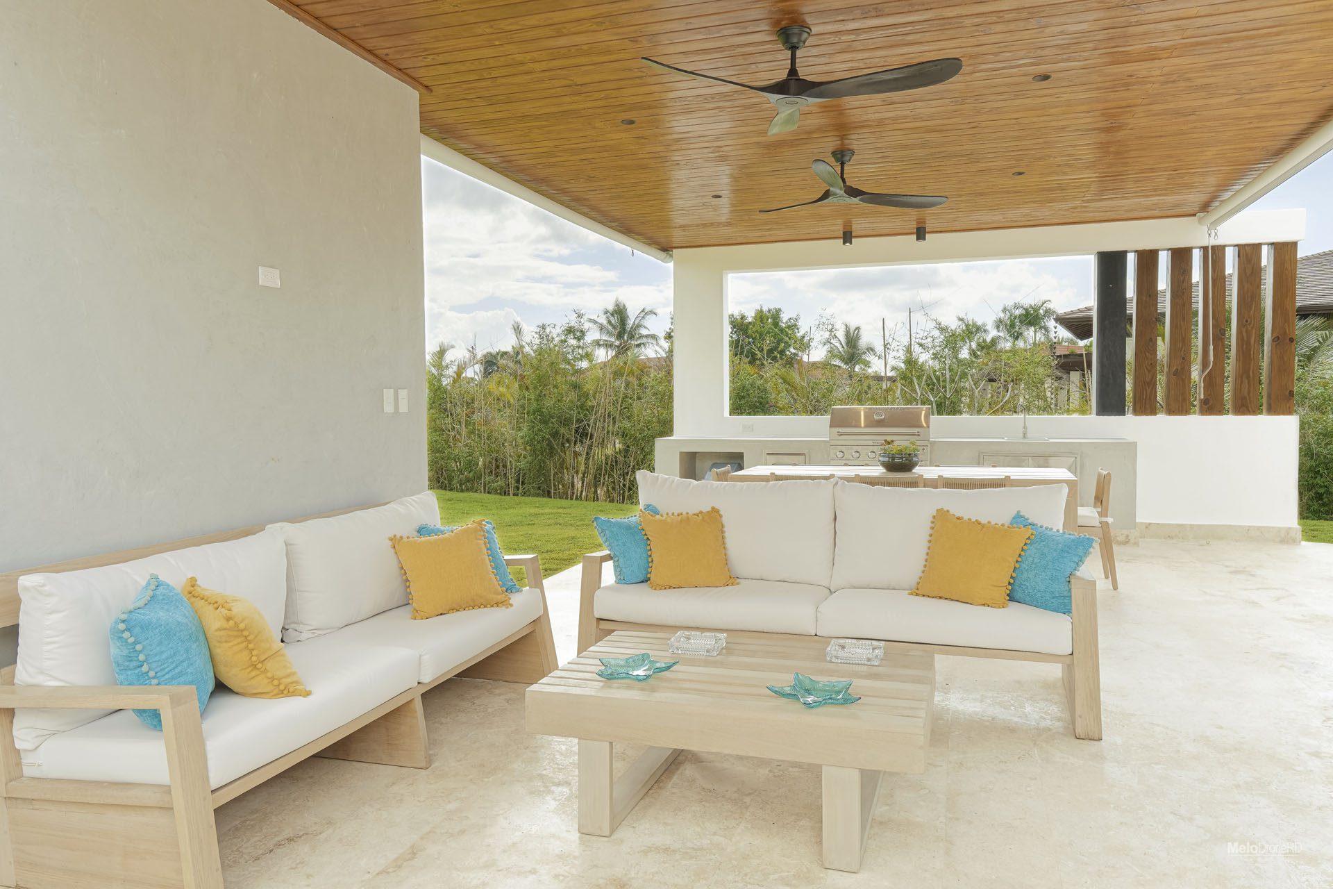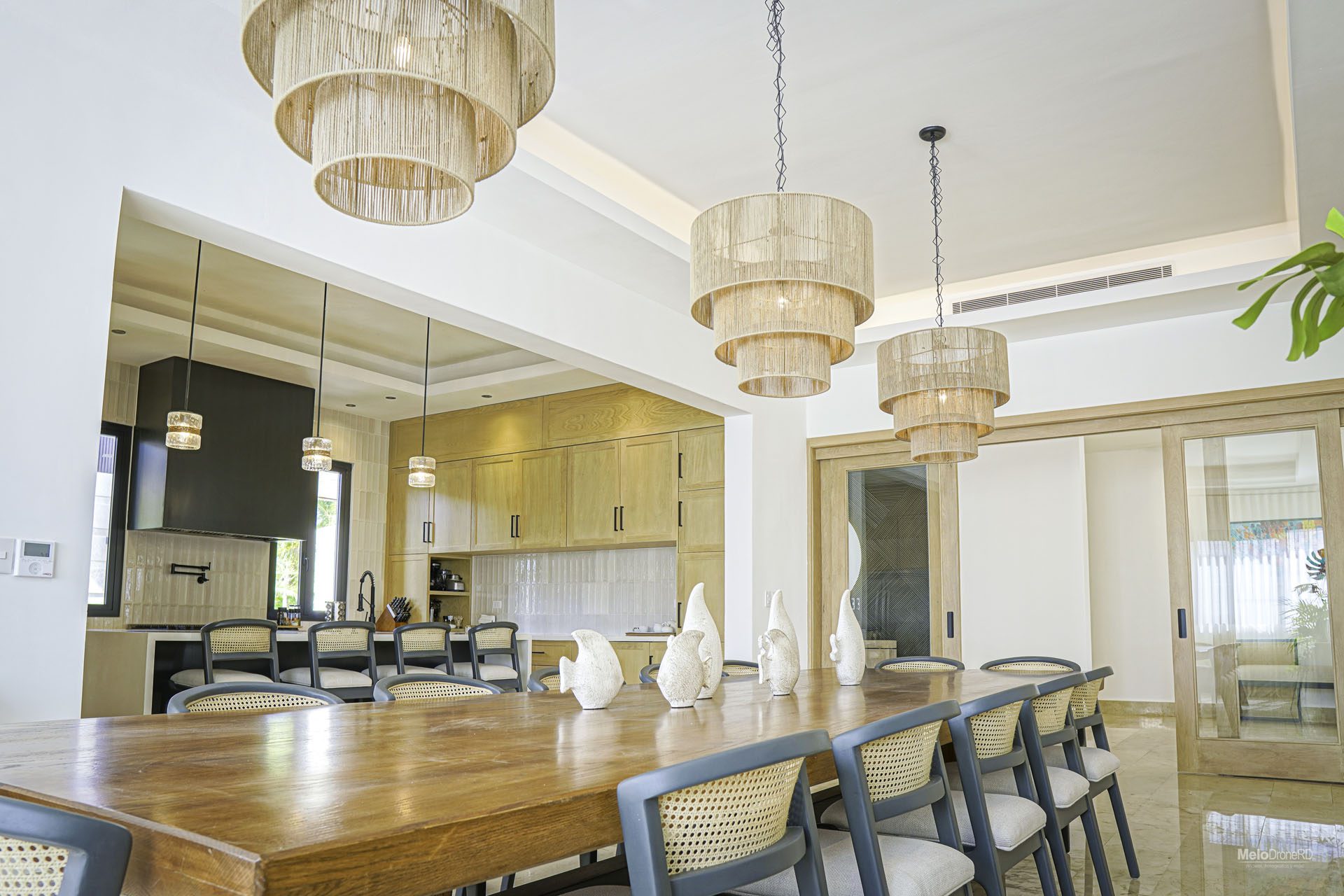 Villa Aurora es una moderna villa tropical considerada como un remanso de relajación y encanto costero. Desde sus acogedores interiores hasta sus amplios espacios al aire libre, cada elemento de este refugio está diseñado para sumergir a los huéspedes en la belleza de la vida isleña. La amplia sala de estar, adornada en tonos suaves, es el lugar perfecto para relajarse en cómodos sofás y hablar entre ellos. En el exterior, una reluciente piscina y un jacuzzi ofrecen un espacio maravilloso para combatir el calor. A un lado del patio, hay un encantador gazebo con un BBQ esperando su próxima aventura culinaria. Reúnase con sus seres queridos para disfrutar de experiencias gastronómicas al aire libre, saboreando delicias a la parrilla con el telón de fondo de los árboles meciéndose con la brisa.