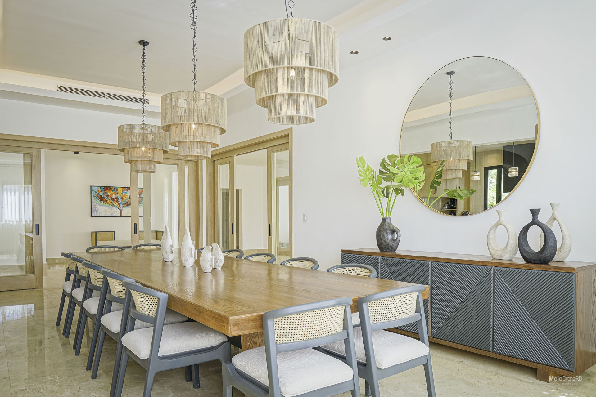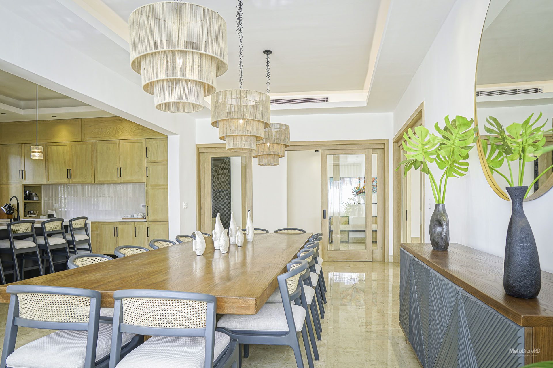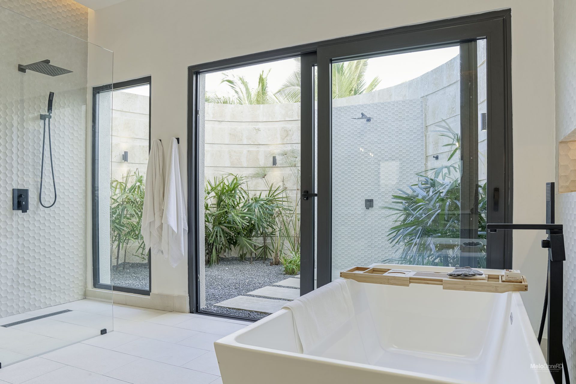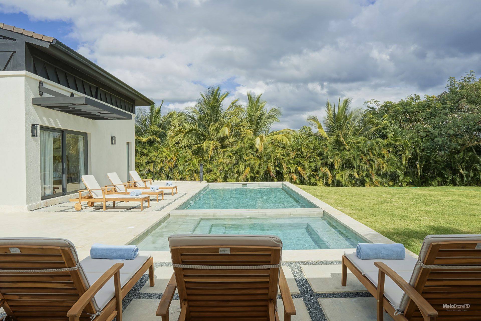 Villa Aurora es una moderna villa tropical considerada como un remanso de relajación y encanto costero. Desde sus acogedores interiores hasta sus amplios espacios al aire libre, cada elemento de este refugio está diseñado para sumergir a los huéspedes en la belleza de la vida isleña. La amplia sala de estar, adornada en tonos suaves, es el lugar perfecto para relajarse en cómodos sofás y hablar entre ellos. En el exterior, una reluciente piscina y un jacuzzi ofrecen un espacio maravilloso para combatir el calor. A un lado del patio, hay un encantador gazebo con un BBQ esperando su próxima aventura culinaria. Reúnase con sus seres queridos para disfrutar de experiencias gastronómicas al aire libre, saboreando delicias a la parrilla con el telón de fondo de los árboles meciéndose con la brisa.