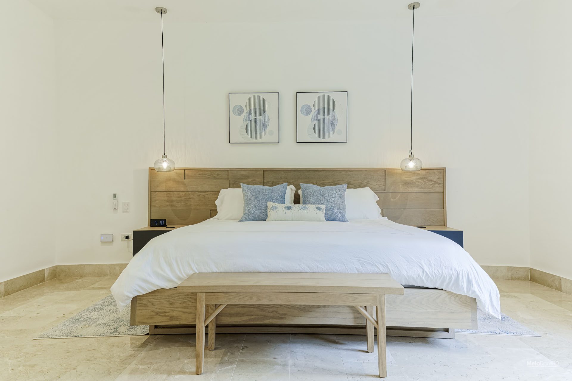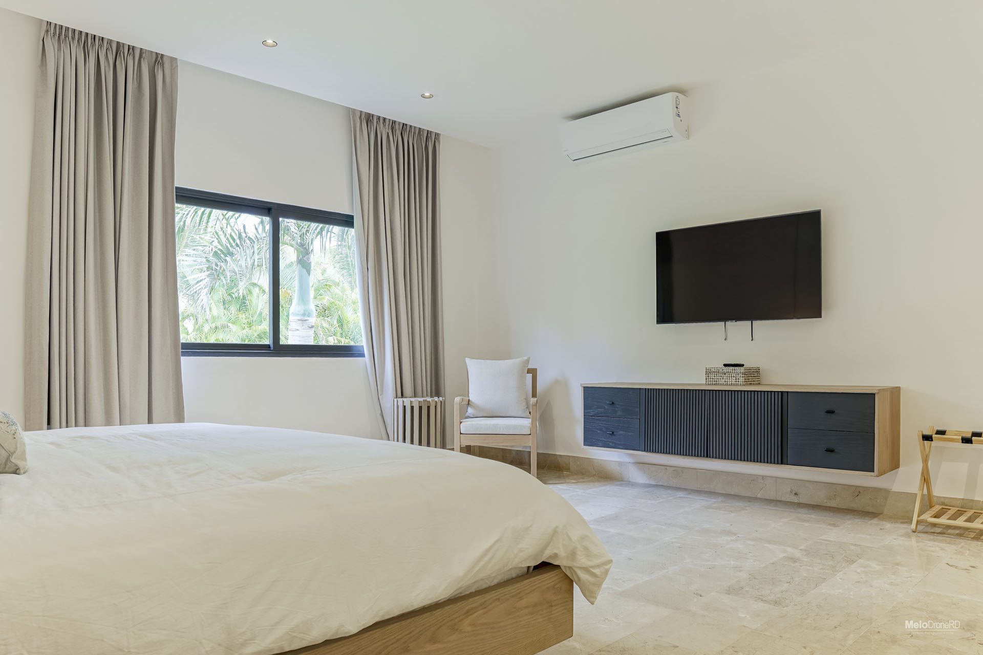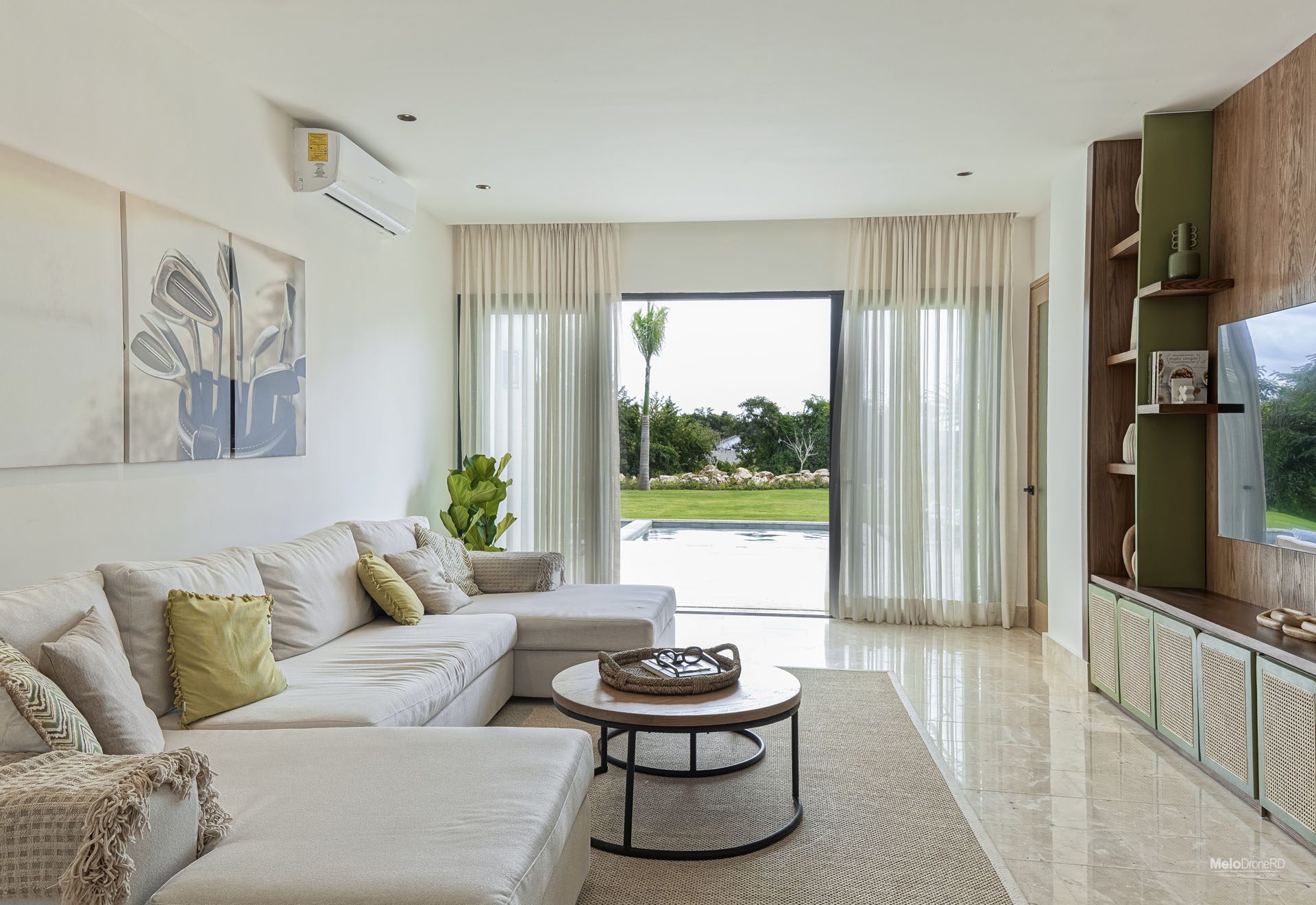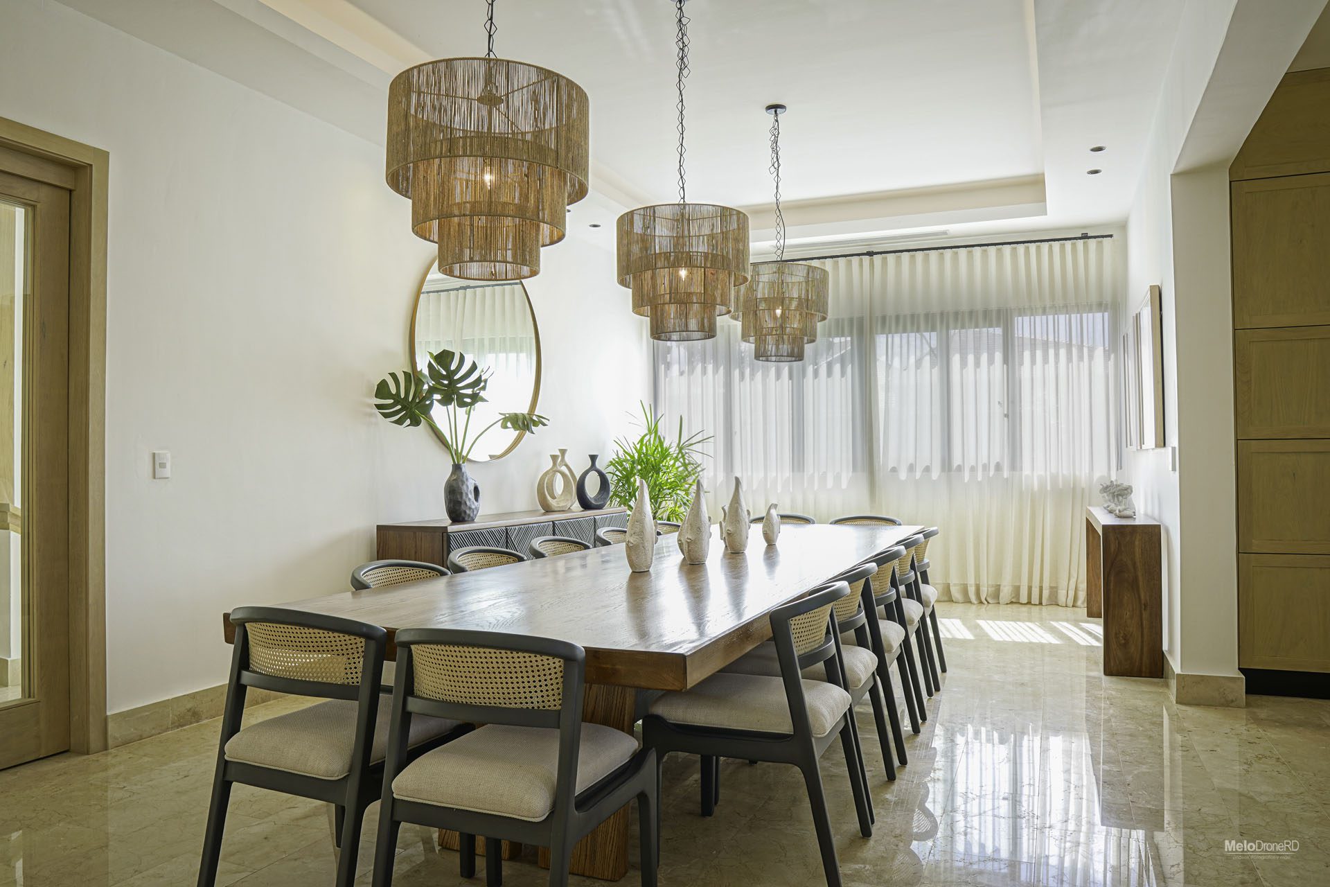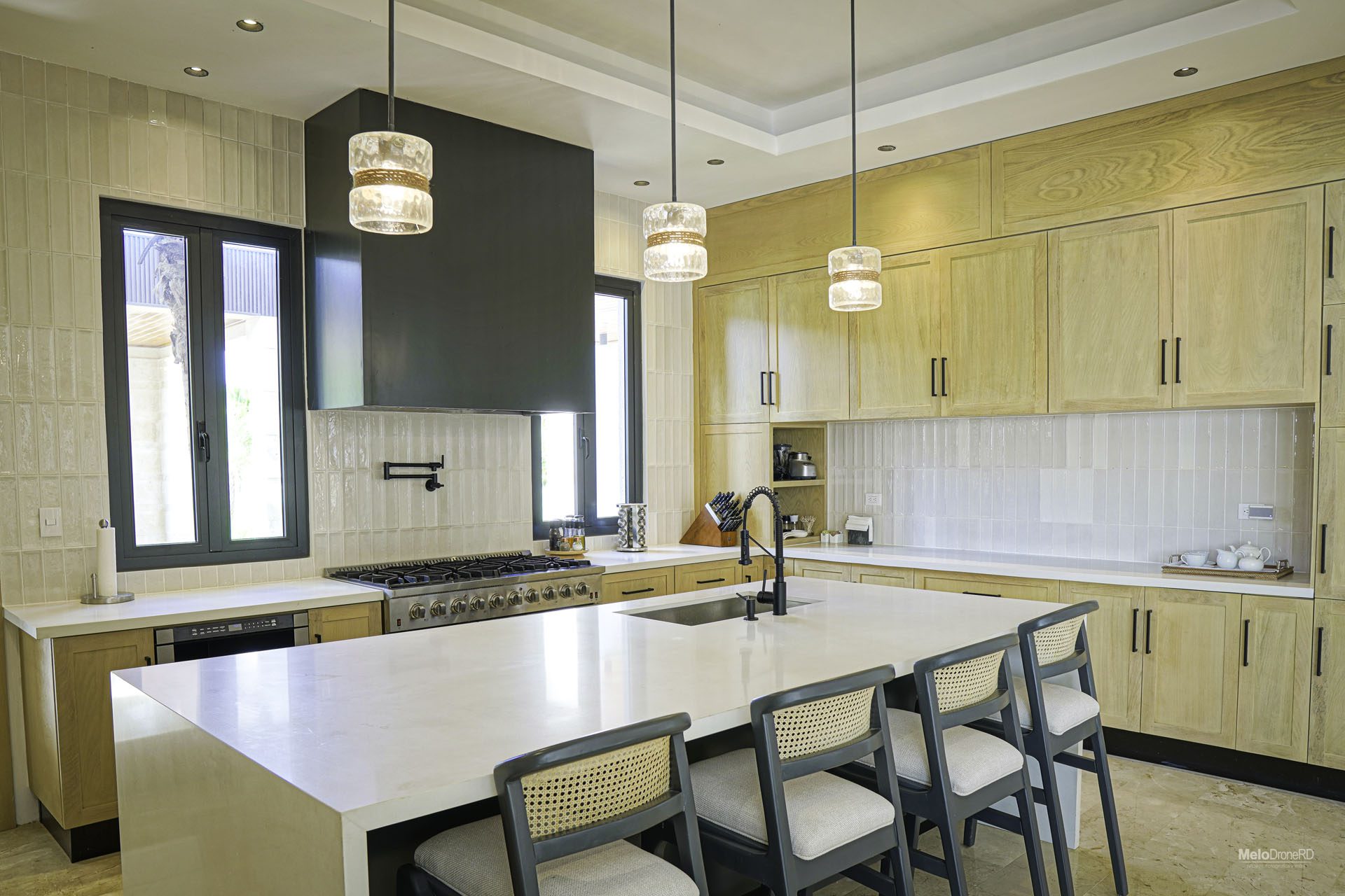 Villa Aurora es una moderna villa tropical considerada como un remanso de relajación y encanto costero. Desde sus acogedores interiores hasta sus amplios espacios al aire libre, cada elemento de este refugio está diseñado para sumergir a los huéspedes en la belleza de la vida isleña. La amplia sala de estar, adornada en tonos suaves, es el lugar perfecto para relajarse en cómodos sofás y hablar entre ellos. En el exterior, una reluciente piscina y un jacuzzi ofrecen un espacio maravilloso para combatir el calor. A un lado del patio, hay un encantador gazebo con un BBQ esperando su próxima aventura culinaria. Reúnase con sus seres queridos para disfrutar de experiencias gastronómicas al aire libre, saboreando delicias a la parrilla con el telón de fondo de los árboles meciéndose con la brisa.