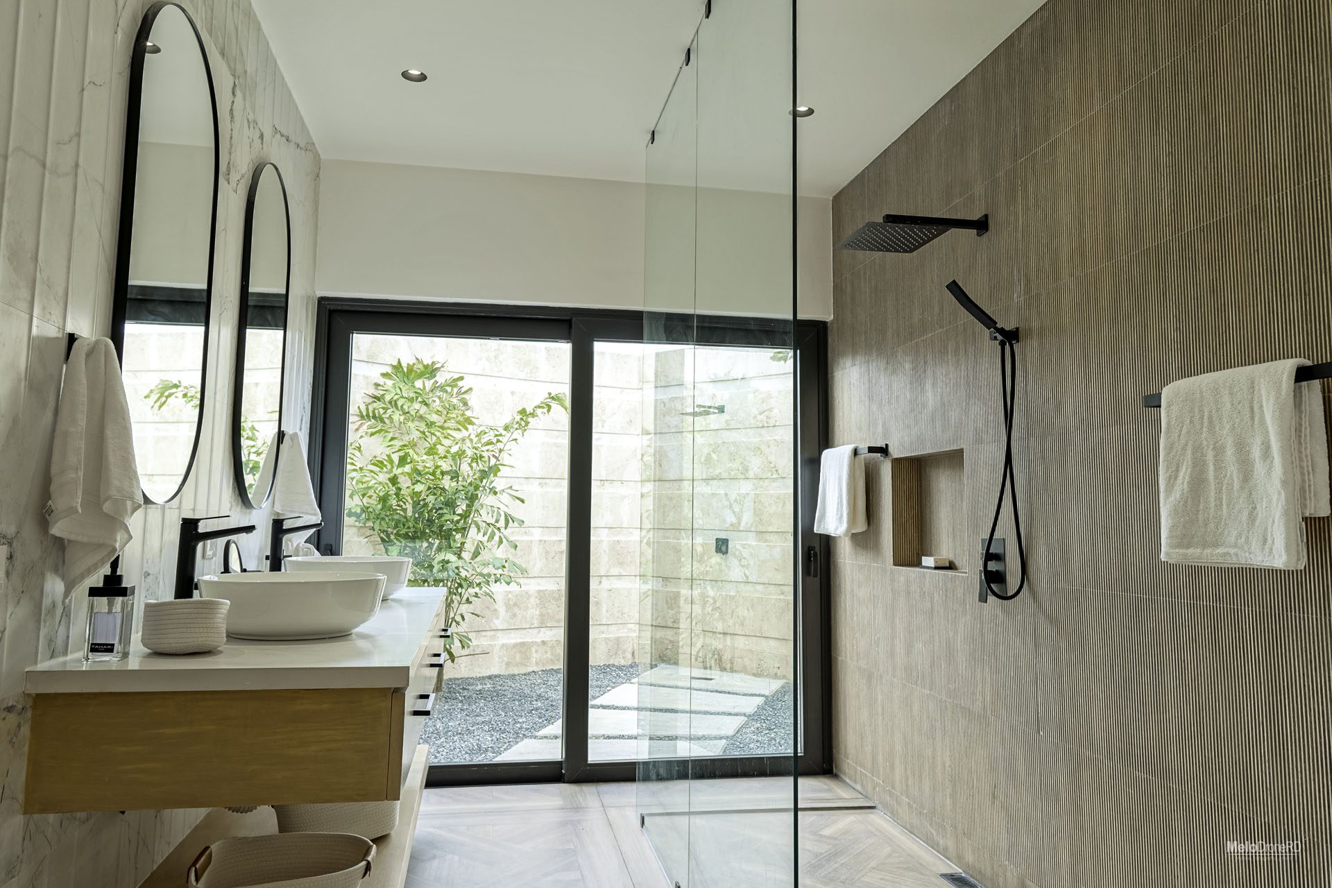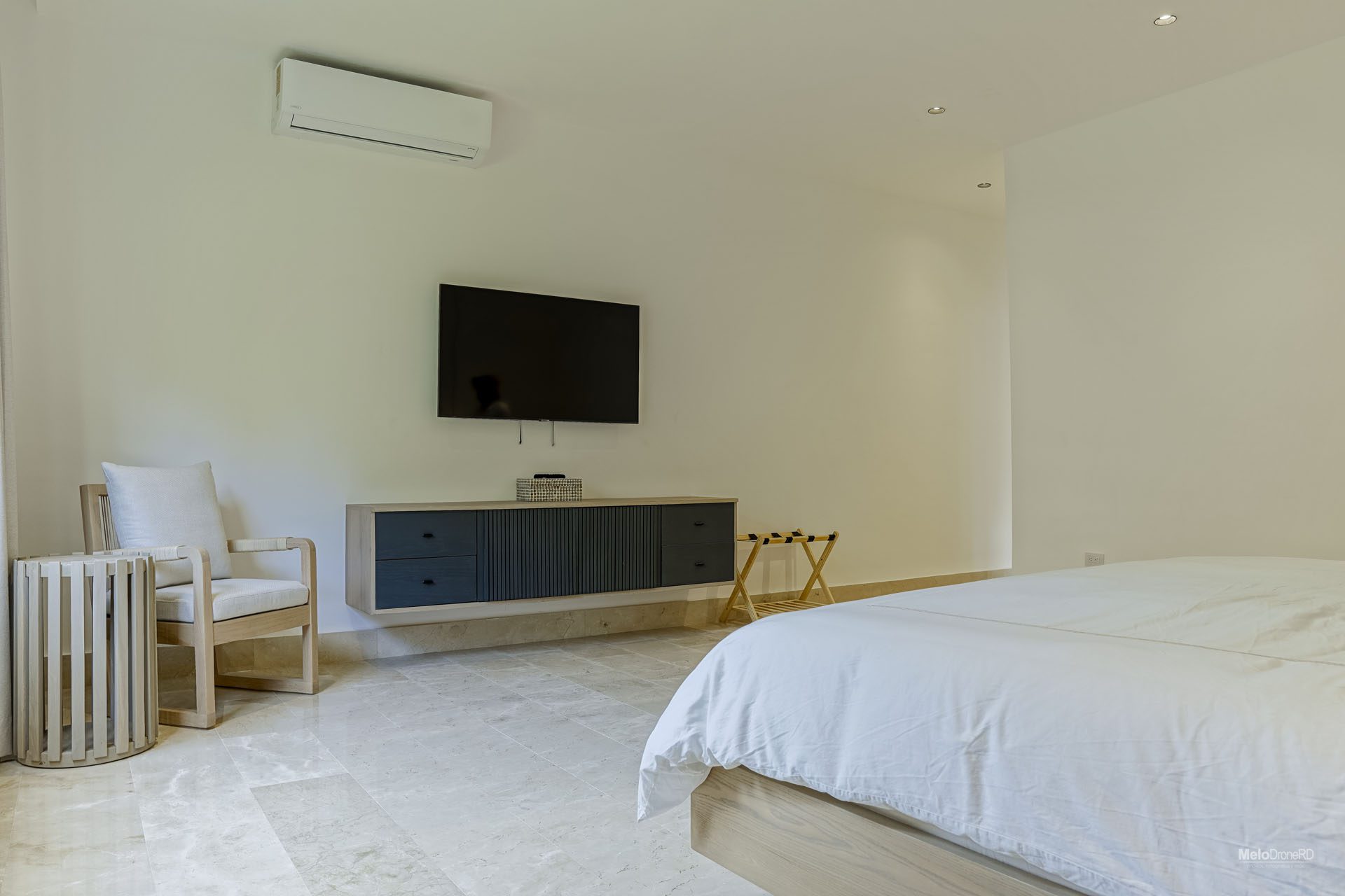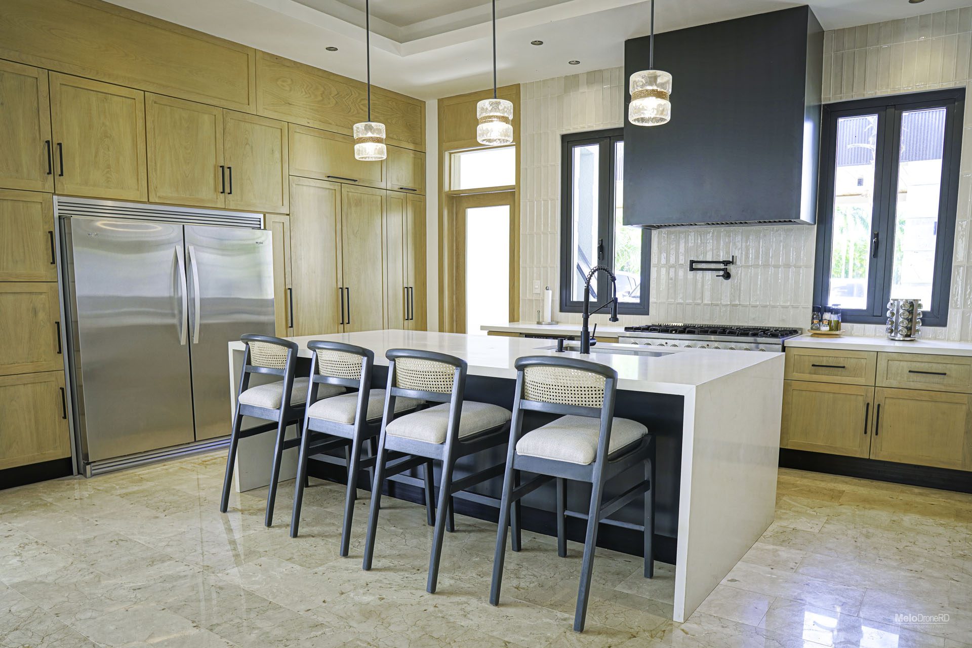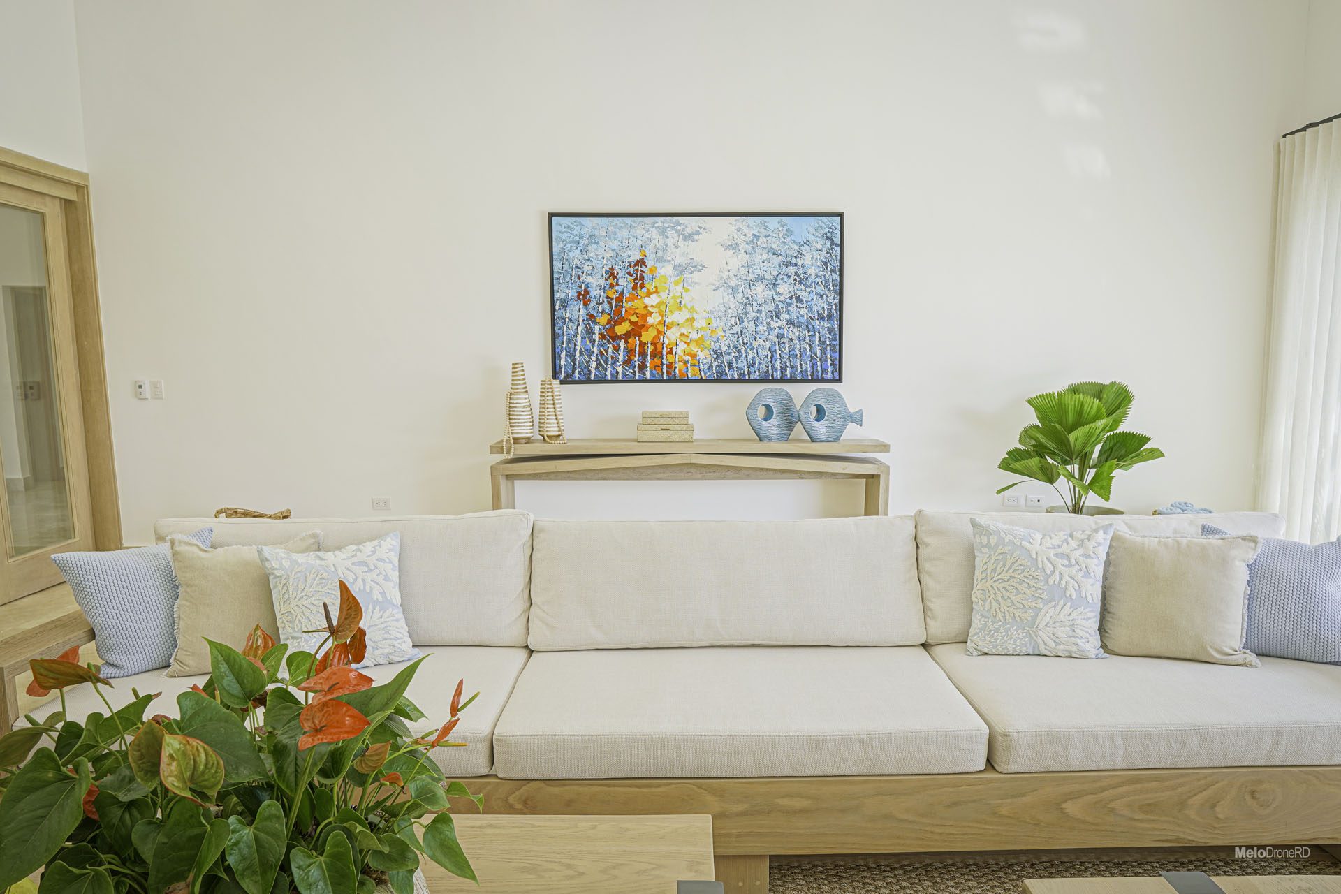 Villa Aurora es una moderna villa tropical considerada como un remanso de relajación y encanto costero. Desde sus acogedores interiores hasta sus amplios espacios al aire libre, cada elemento de este refugio está diseñado para sumergir a los huéspedes en la belleza de la vida isleña. La amplia sala de estar, adornada en tonos suaves, es el lugar perfecto para relajarse en cómodos sofás y hablar entre ellos. En el exterior, una reluciente piscina y un jacuzzi ofrecen un espacio maravilloso para combatir el calor. A un lado del patio, hay un encantador gazebo con un BBQ esperando su próxima aventura culinaria. Reúnase con sus seres queridos para disfrutar de experiencias gastronómicas al aire libre, saboreando delicias a la parrilla con el telón de fondo de los árboles meciéndose con la brisa.