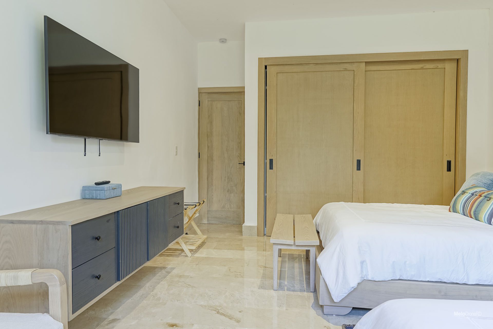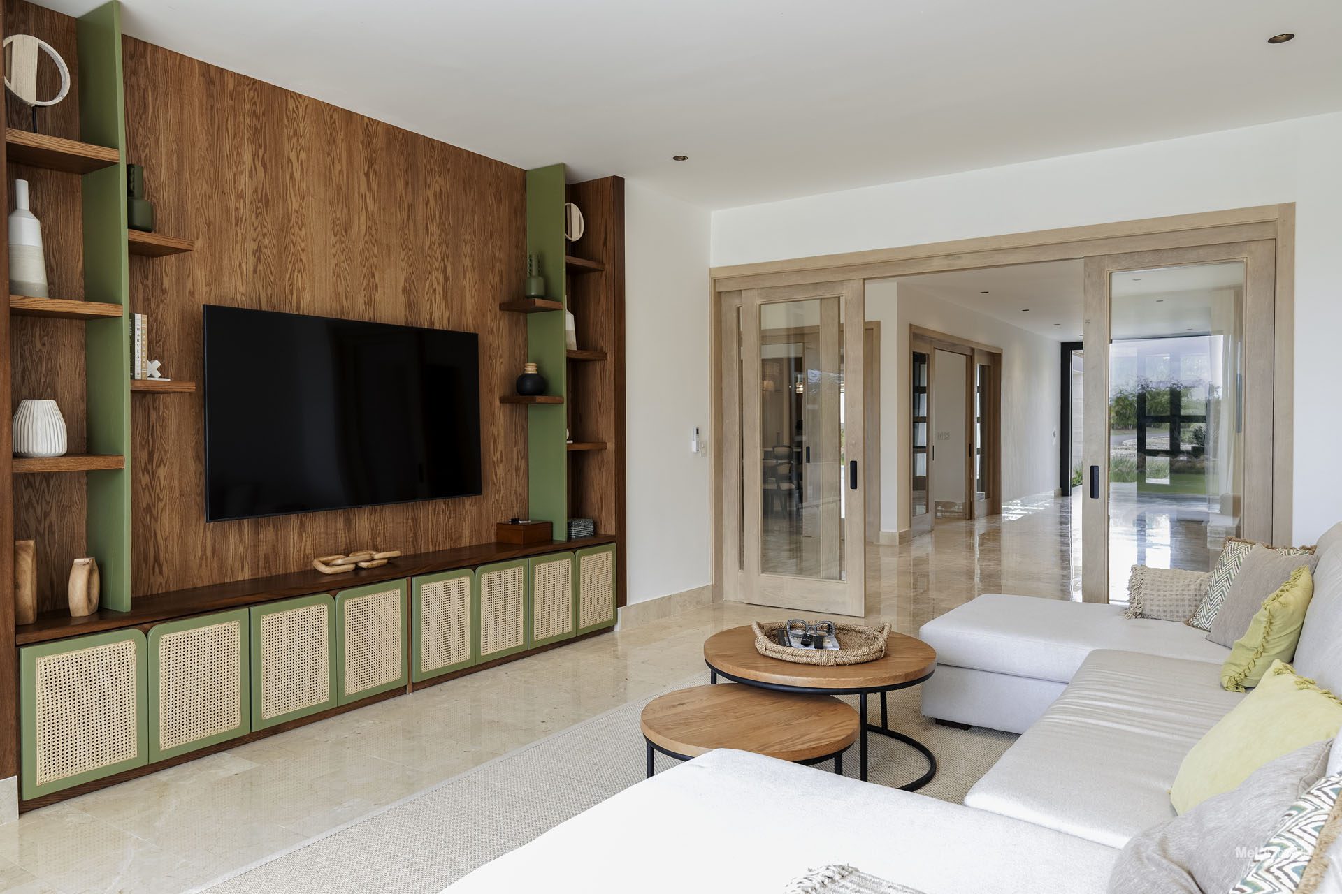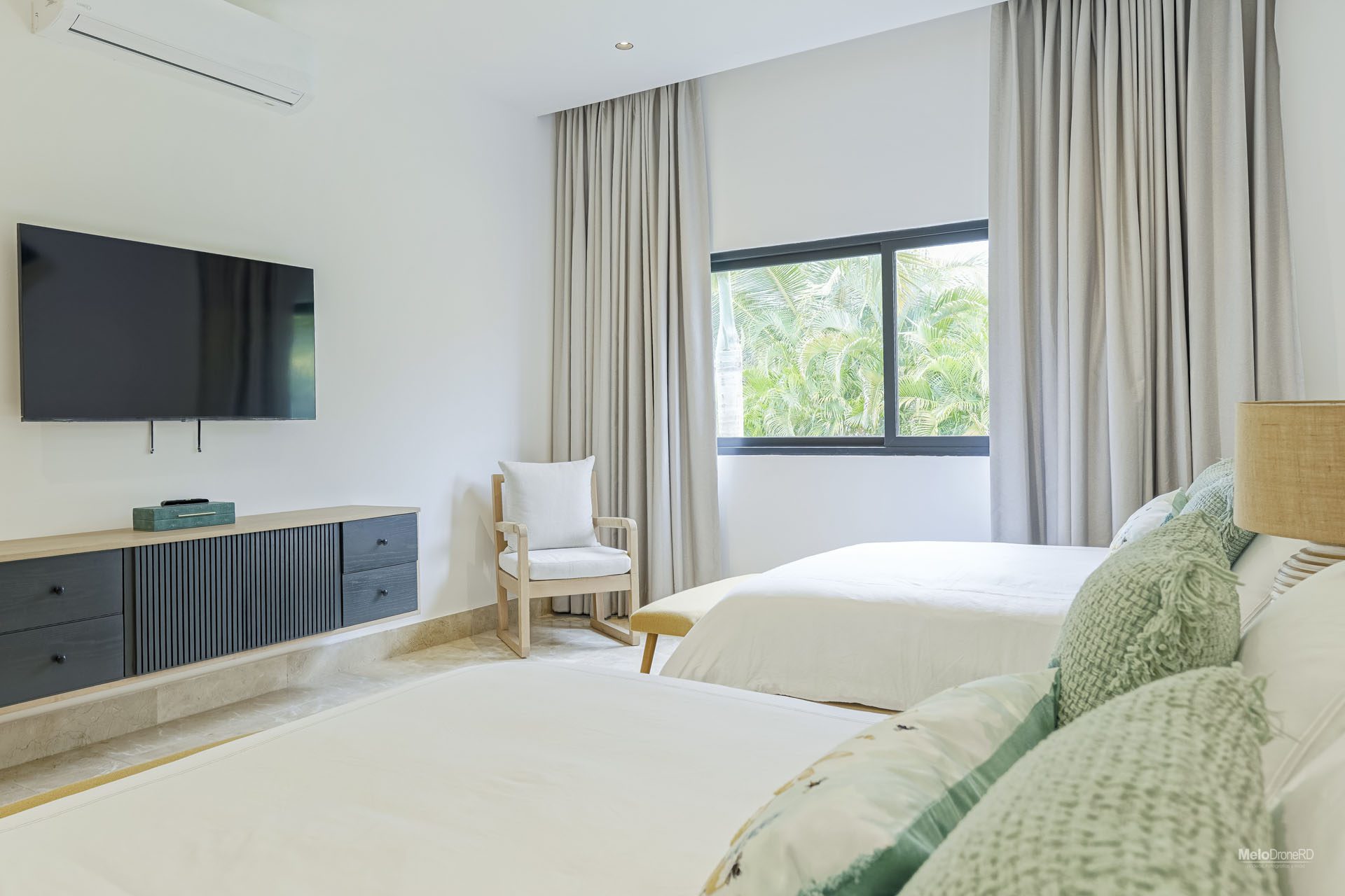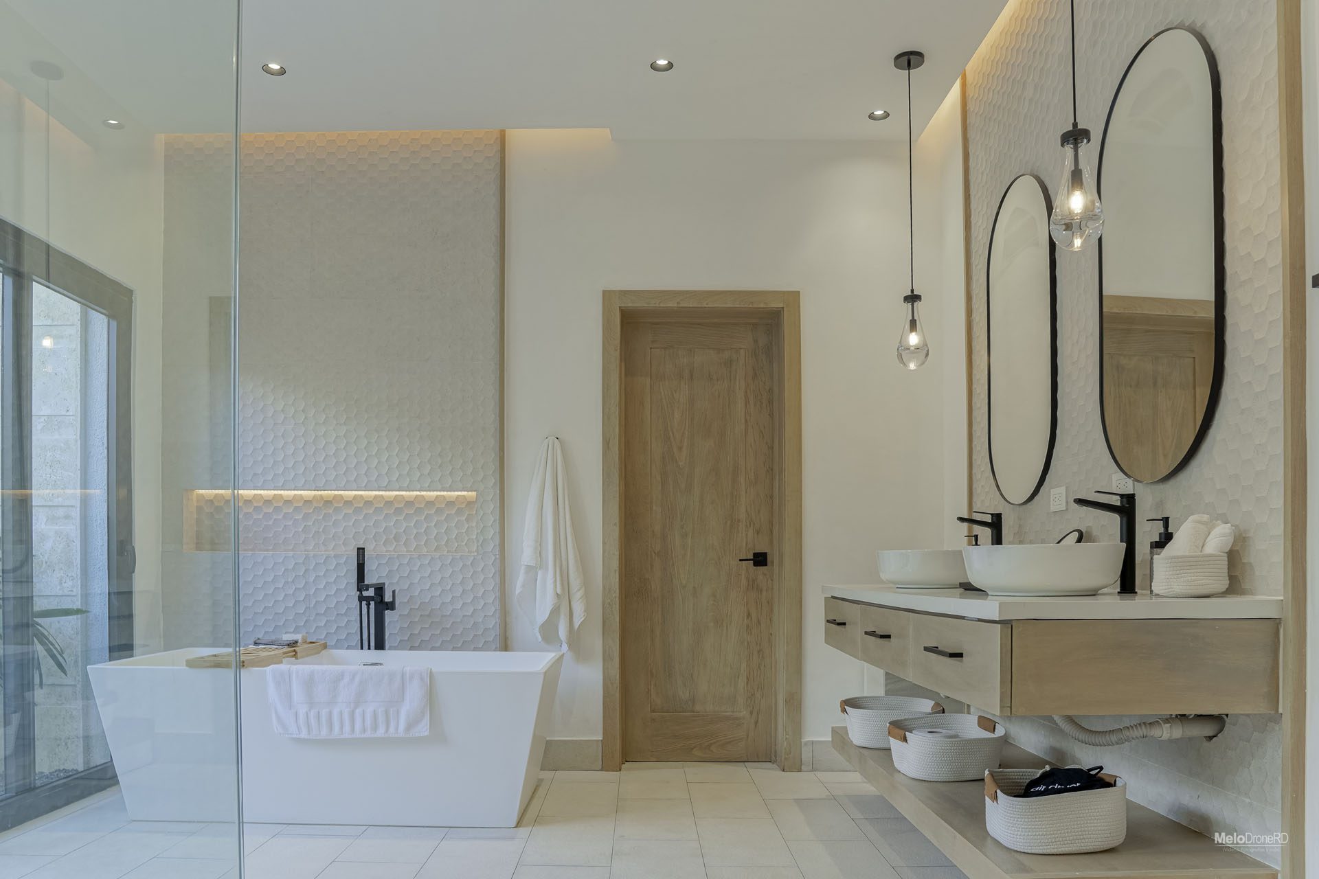 Villa Aurora es una moderna villa tropical considerada como un remanso de relajación y encanto costero. Desde sus acogedores interiores hasta sus amplios espacios al aire libre, cada elemento de este refugio está diseñado para sumergir a los huéspedes en la belleza de la vida isleña. La amplia sala de estar, adornada en tonos suaves, es el lugar perfecto para relajarse en cómodos sofás y hablar entre ellos. En el exterior, una reluciente piscina y un jacuzzi ofrecen un espacio maravilloso para combatir el calor. A un lado del patio, hay un encantador gazebo con un BBQ esperando su próxima aventura culinaria. Reúnase con sus seres queridos para disfrutar de experiencias gastronómicas al aire libre, saboreando delicias a la parrilla con el telón de fondo de los árboles meciéndose con la brisa.