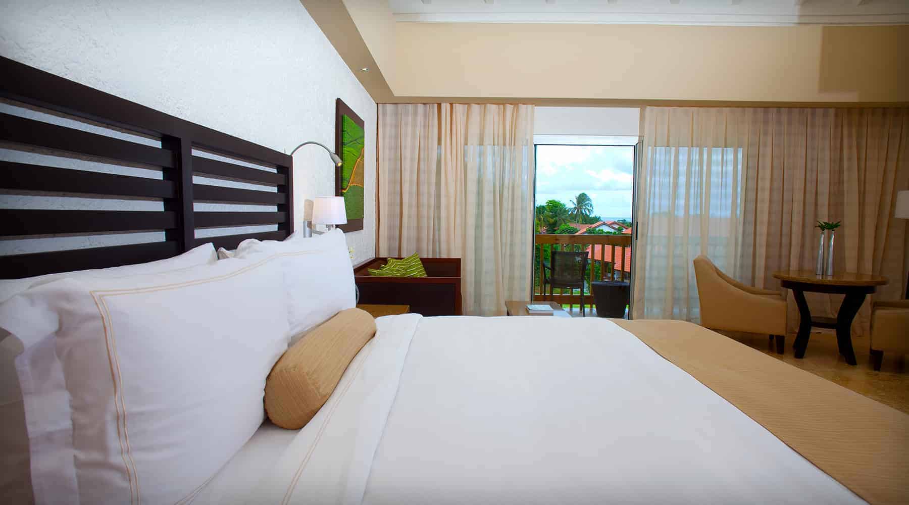 • Detalle de bienvenida: Canasta dominicana que incluye: 3 botellas de Ron, surtido de botellas de refrescos, cervezas y agua, cesta de fruta de temporada