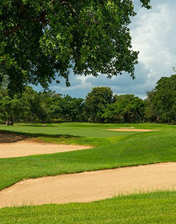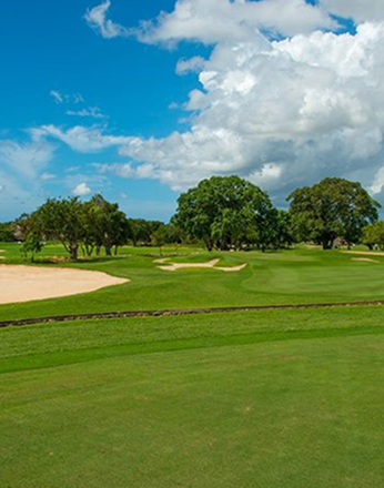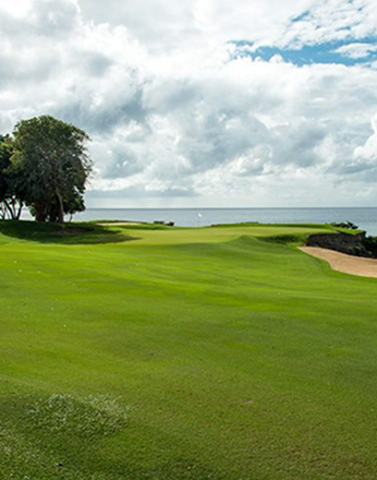 The Links is a classic 18-hole inland course that has a traditional British style design with a moderately hilly layout with tall Bahia grass that frames the bunkers and undulating greens. It features spectacular Caribbean views and is considered one of the most-playable courses Dye has designed.