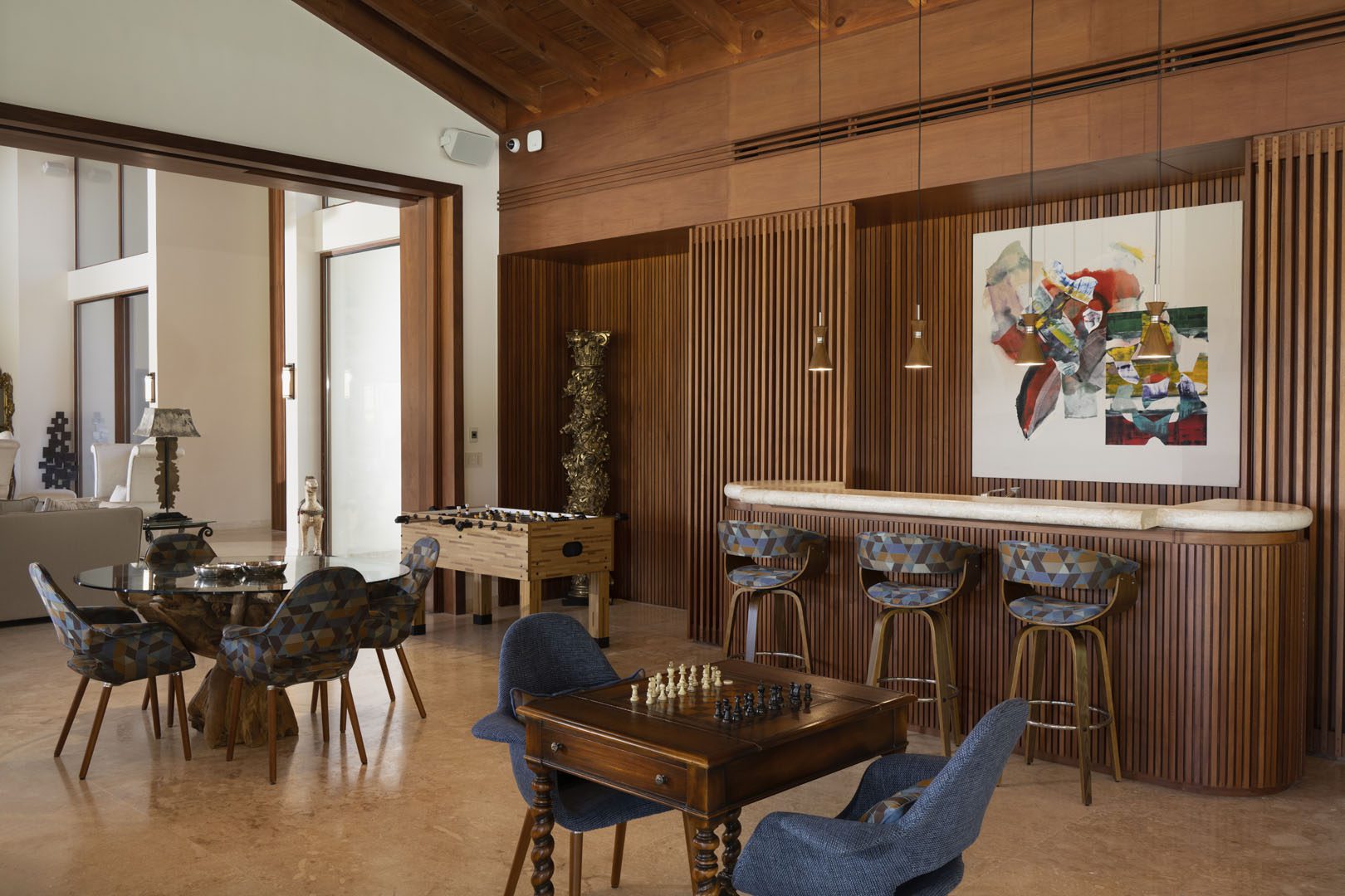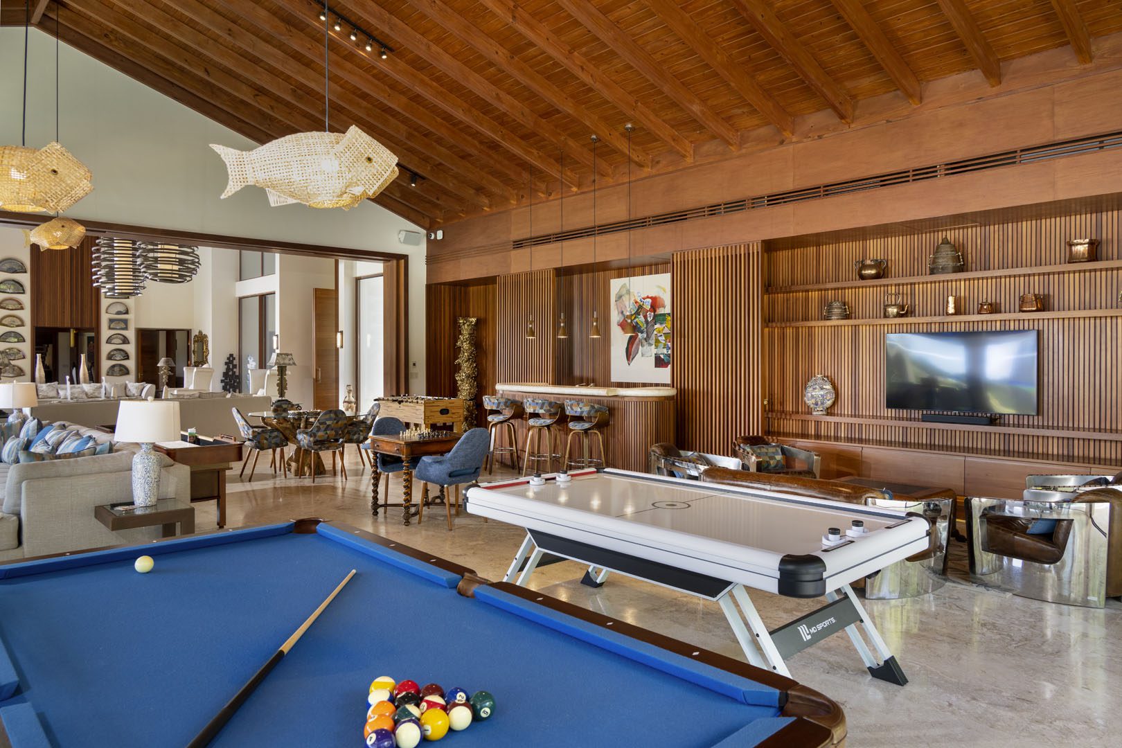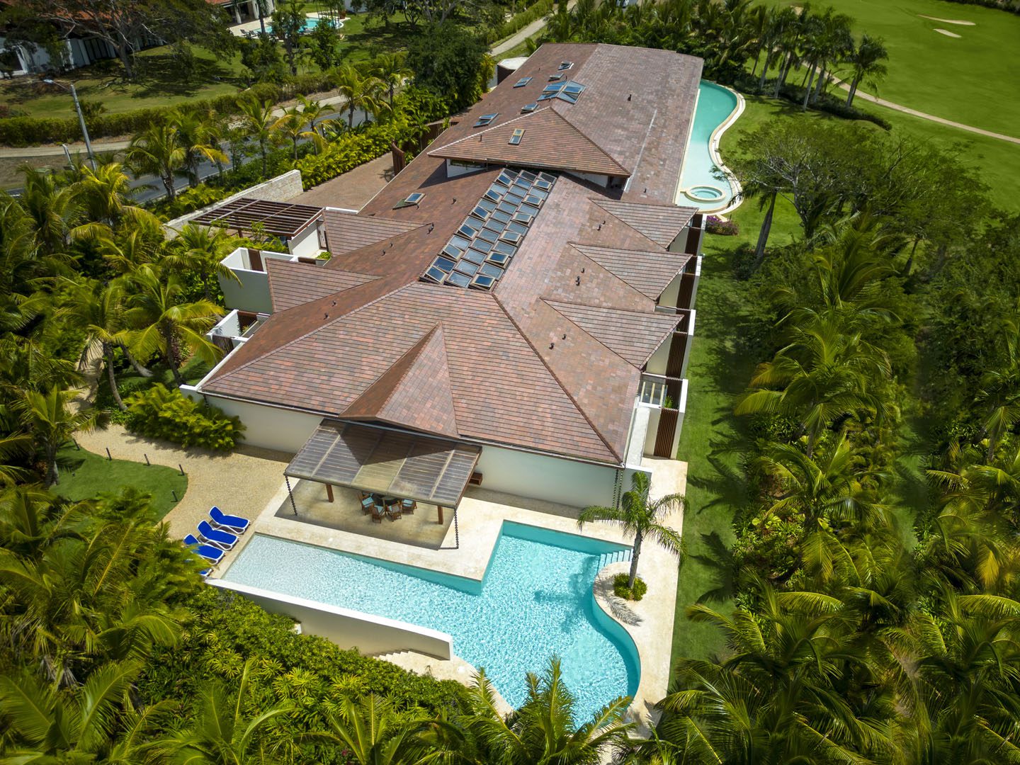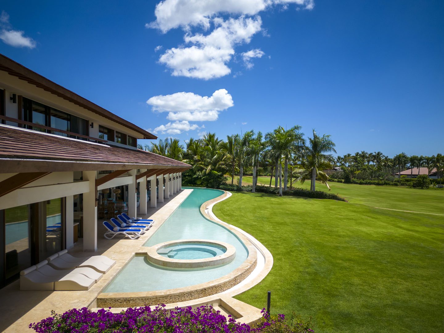 Villa El Descubrimiento is an architectural masterpiece that seamlessly combines lavish amenities and unparalelled design. With 3 floors connected by an elevator, the space provides convenience for every guest. Surprising details and quirky decor can be found in every corner, creating an ambiance both enchanting and welcoming. When it comes to entertainment, Villa El Descubrimiento offers the best alternatives for people of all ages and interests. Competitive folks can push their luck in the game room, choosing between air hockey, pool, or chess. Movie enthusiasts will be delighted by the indoor theater, equipped with cutting-edge audiovisual technology and comfortable chairs for a cinematic experience like no other. Three bars are strategically placed throughout the villa to ensure that refreshments are always within reach. On quieter days, the gym and yoga room provide opportunities for wellness, while a dedicated workstation caters to those who need to balance work and play during their stay. Two exclusive pools offer a refreshing respite, where you can relax overlooking the golf course and parts of the Caribbean sea. Villa El Descubrimiento promises an extravagant experience for people who love to discover hidden gems in the world of luxury accommodations.