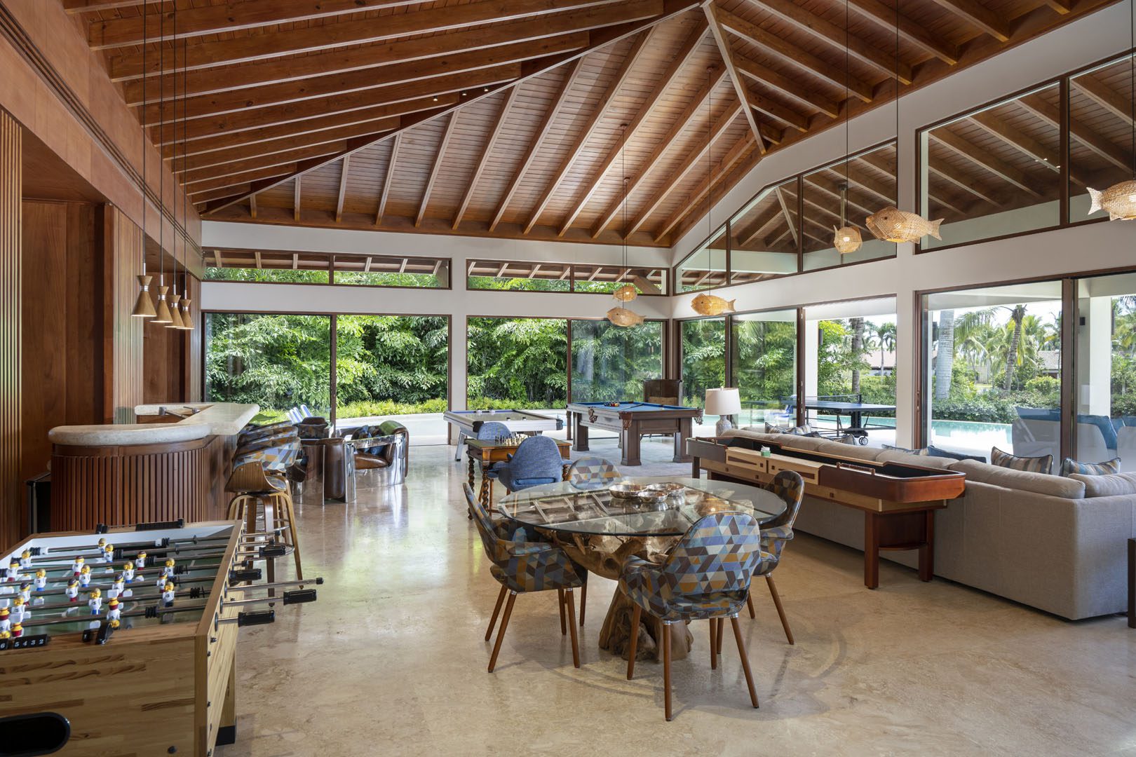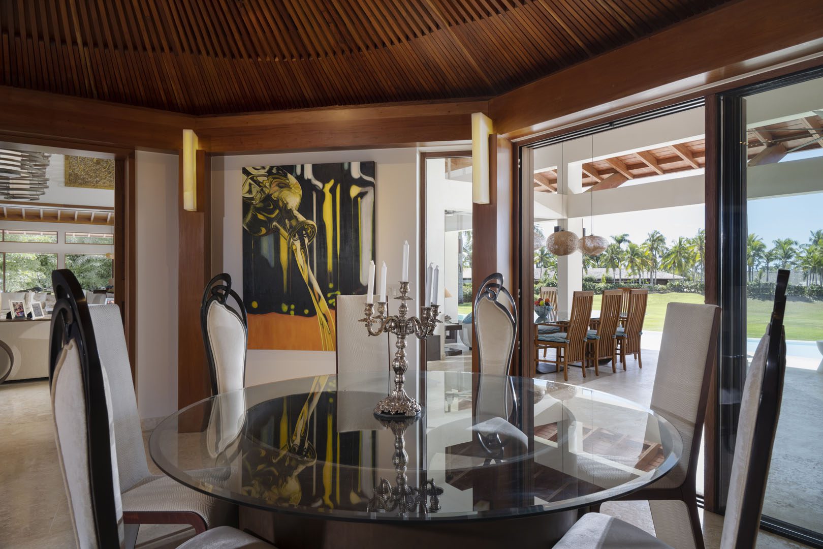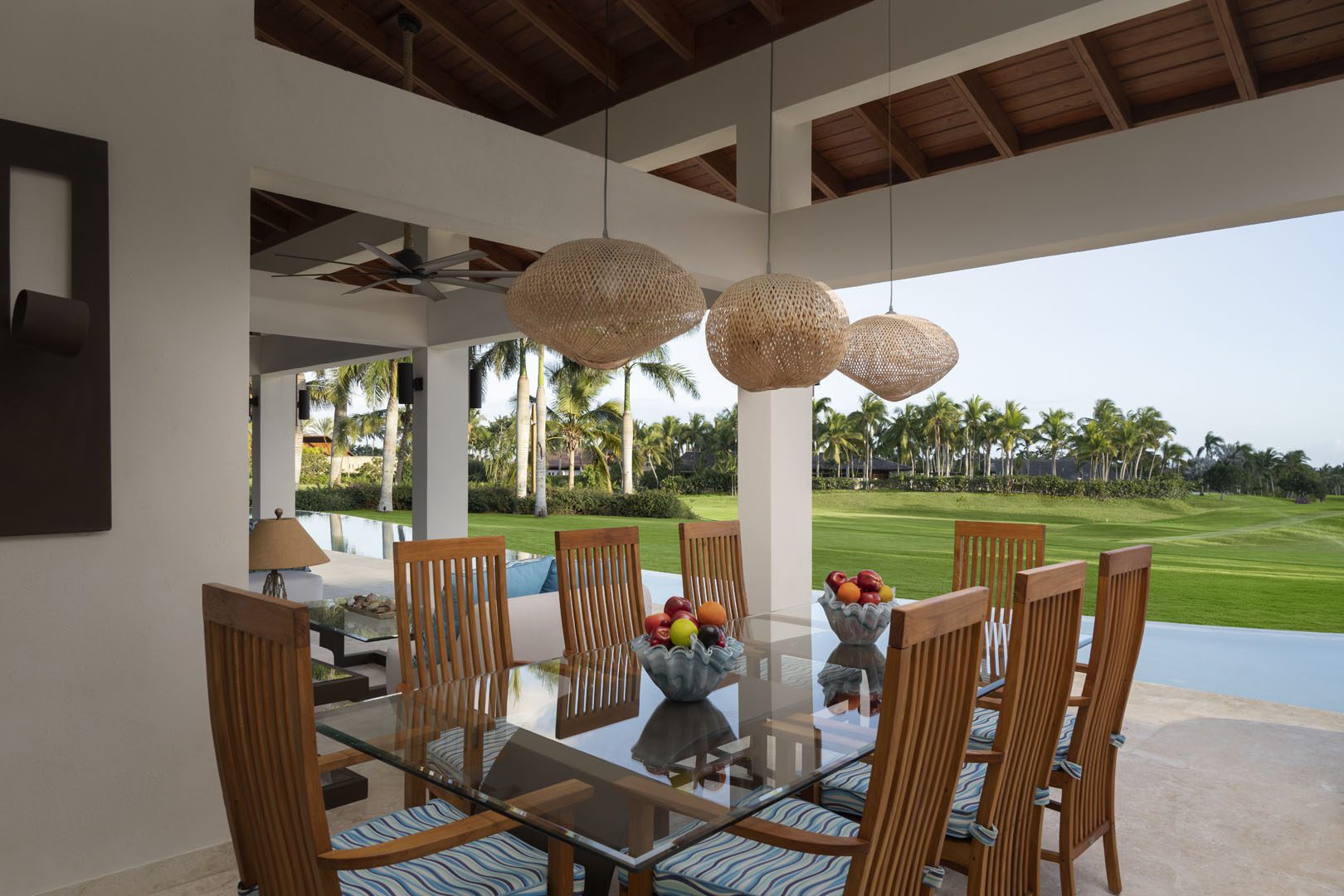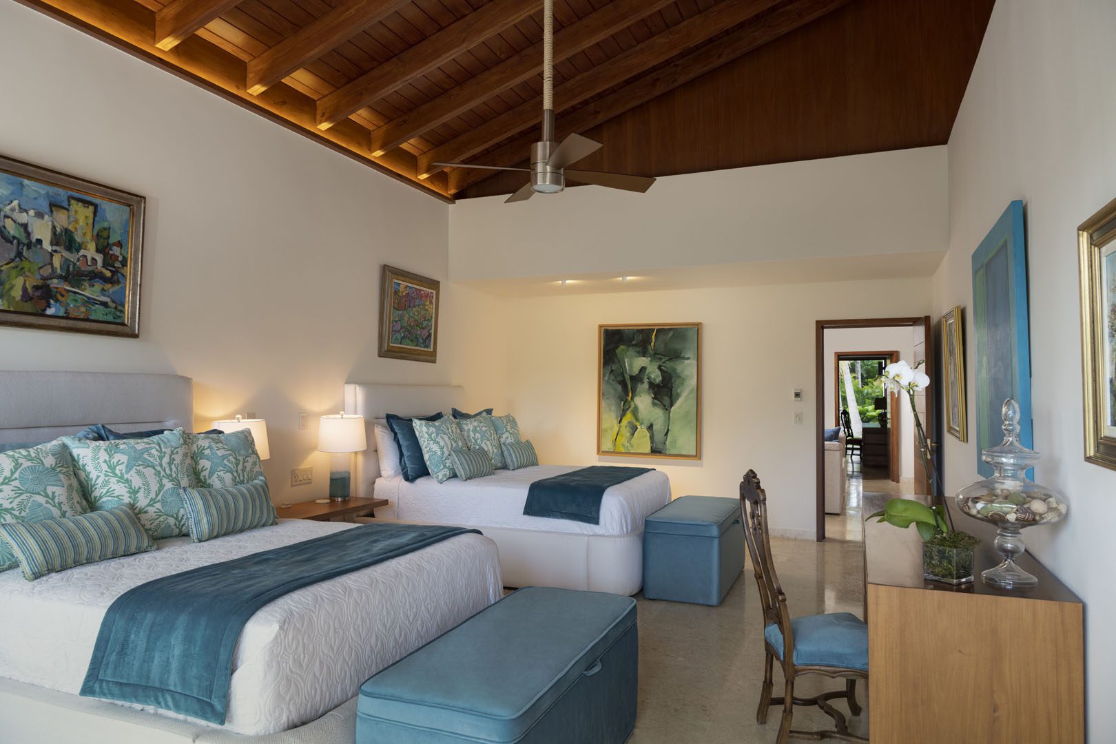Villa El Descubrimiento is an architectural masterpiece that seamlessly combines lavish amenities and unparalelled design. With 3 floors connected by an elevator, the space provides convenience for every guest. Surprising details and quirky decor can be found in every corner, creating an ambiance both enchanting and welcoming. When it comes to entertainment, Villa El Descubrimiento offers the best alternatives for people of all ages and interests. Competitive folks can push their luck in the game room, choosing between air hockey, pool, or chess. Movie enthusiasts will be delighted by the indoor theater, equipped with cutting-edge audiovisual technology and comfortable chairs for a cinematic experience like no other. Three bars are strategically placed throughout the villa to ensure that refreshments are always within reach. On quieter days, the gym and yoga room provide opportunities for wellness, while a dedicated workstation caters to those who need to balance work and play during their stay. Two exclusive pools offer a refreshing respite, where you can relax overlooking the golf course and parts of the Caribbean sea. Villa El Descubrimiento promises an extravagant experience for people who love to discover hidden gems in the world of luxury accommodations.