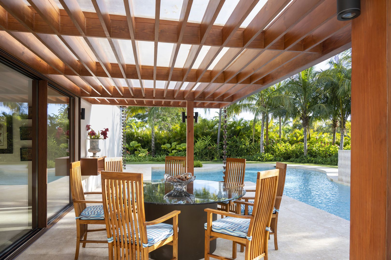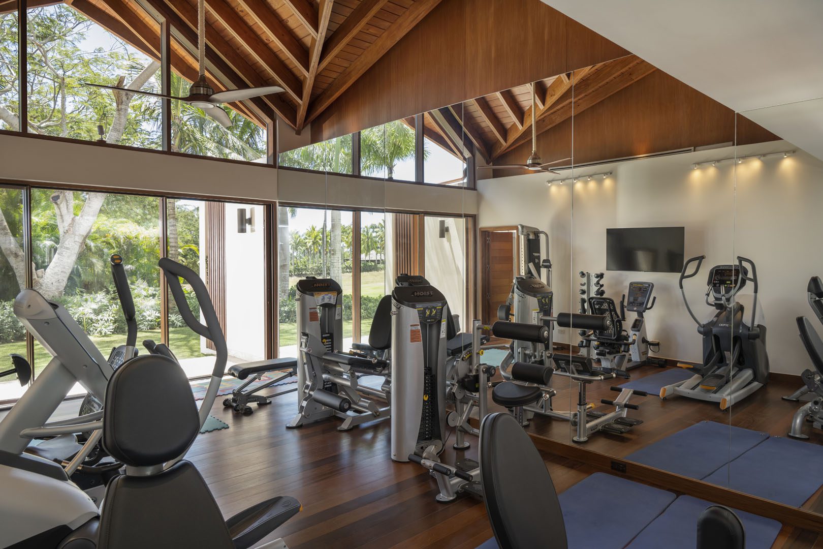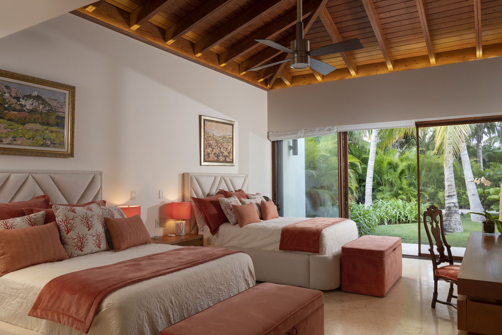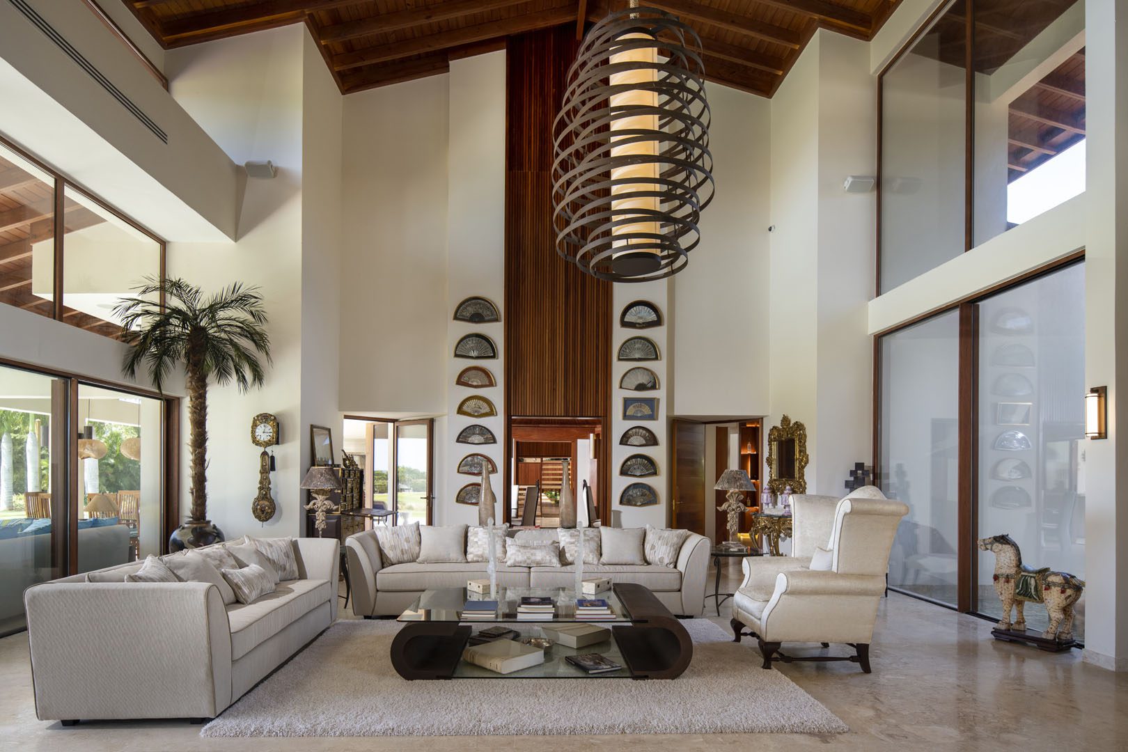 Villa El Descubrimiento is an architectural masterpiece that seamlessly combines lavish amenities and unparalelled design. With 3 floors connected by an elevator, the space provides convenience for every guest. Surprising details and quirky decor can be found in every corner, creating an ambiance both enchanting and welcoming. When it comes to entertainment, Villa El Descubrimiento offers the best alternatives for people of all ages and interests. Competitive folks can push their luck in the game room, choosing between air hockey, pool, or chess. Movie enthusiasts will be delighted by the indoor theater, equipped with cutting-edge audiovisual technology and comfortable chairs for a cinematic experience like no other. Three bars are strategically placed throughout the villa to ensure that refreshments are always within reach. On quieter days, the gym and yoga room provide opportunities for wellness, while a dedicated workstation caters to those who need to balance work and play during their stay. Two exclusive pools offer a refreshing respite, where you can relax overlooking the golf course and parts of the Caribbean sea. Villa El Descubrimiento promises an extravagant experience for people who love to discover hidden gems in the world of luxury accommodations.